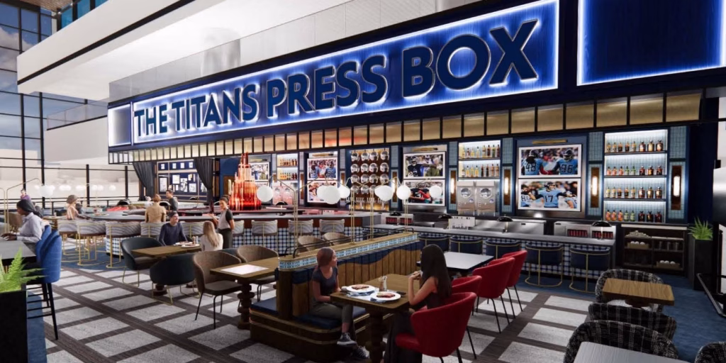 Having prior experience at Nashville’s BNA Airport, we were keen on making more of our mark on the transit hub, this time in partnership with a legendary brand, the Tennessee Titans. Our work with the franchise resulted in a sit-down restaurant and bar infused with the recognizable and energetic brand identity of Tennessee’s favorite football team.
